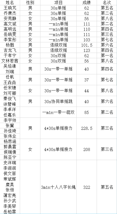 2019年12月7日,我校于学生活动中心举行了校园跳绳比赛。黄色漫画 运动员团结一致、自信昂扬,取得了第四名的好成绩。