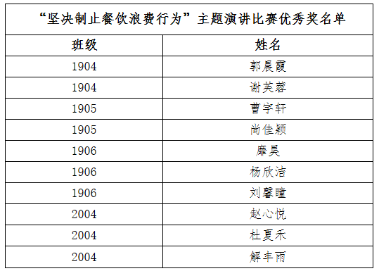 为深刻领会习近平总书记关于“坚决制止餐饮浪费行为”重要指示精神,引领同学们树立牢固的勤俭节约的生活理念,院学生会举办了“坚决制止餐饮浪费行为”为主题的演讲比赛。