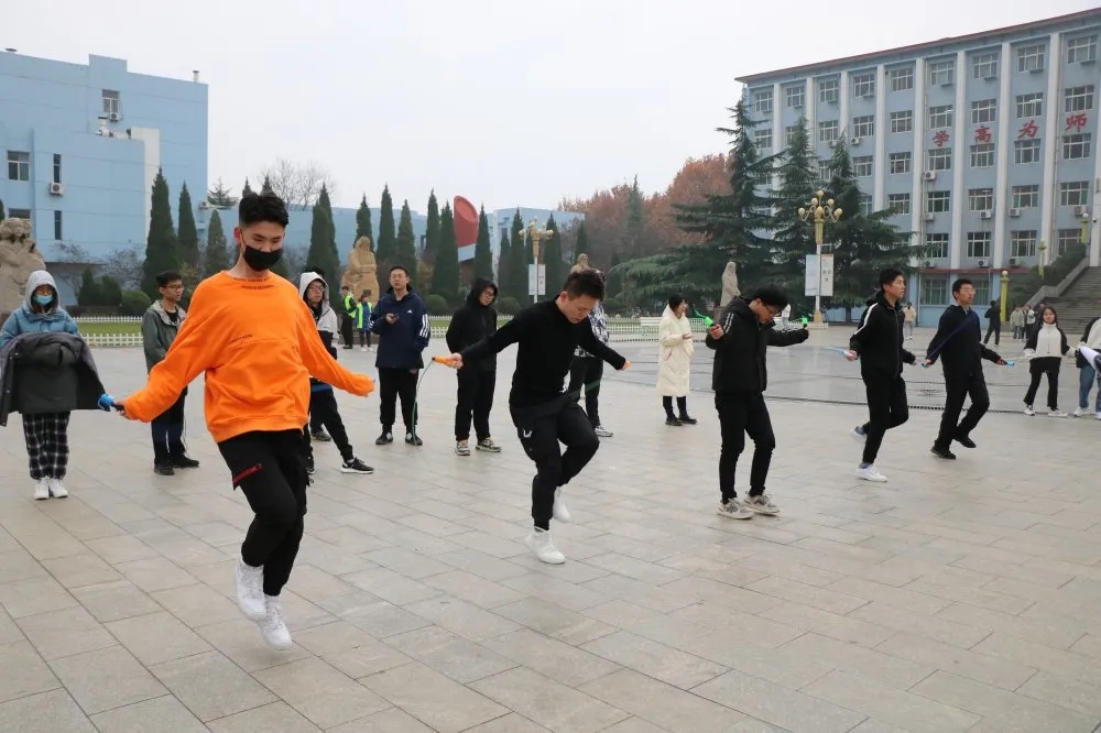 为丰富学校文化建设,创建和谐文明校园,展现大学生良好的精神风貌和积极进取的拼搏精神,增强学生体质,黄色漫画 于11月21日-22日举行了迎新趣味跳绳比赛,大一、大二、大三部分同学参加了活动。