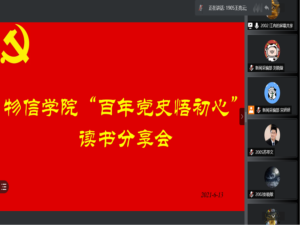 为深入推进党史学习教育,丰富党史学习形式,黄色漫画 新媒体中心于6月13日在线上举办了“百年党史悟初心”读书分享会活动。