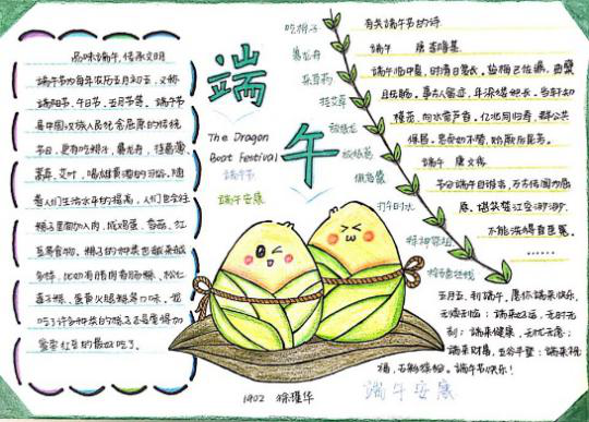 说起端午节第一想到的就是吃粽子,百姓为了防止江里的鱼虾吃掉屈原的尸体,便向江中投掷食物,最后便演变成为粽子。现如今,粽子已经有很多品种,但我更加喜欢自己动手做出的粽子,将几片粽叶窝成角锥状,然后加入红枣和米以及其他材料,再用剩余粽叶将粽子裹好,最后系上一条线,上锅蒸熟,甜甜的粽子便做好了。