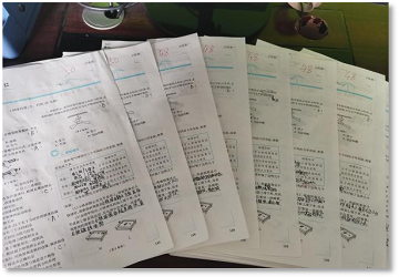 因为刚接触学生,所以作为实习生的我很认真的批改学生做的习题,希望通过学生的作答情况以及我的批阅情况来了解学生的学习情况和我的教学成果。