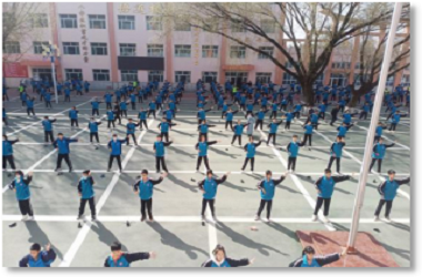 因疫情防控,各个年级课间分散上操,时不时的可以看见七年级的学生们喊着口号,迈步向前,胸前的红领巾在早春的冷风中飘扬,八年级的学生活力四射,朝气蓬勃,这让我不禁的感慨道:多么美好的青春时光啊!