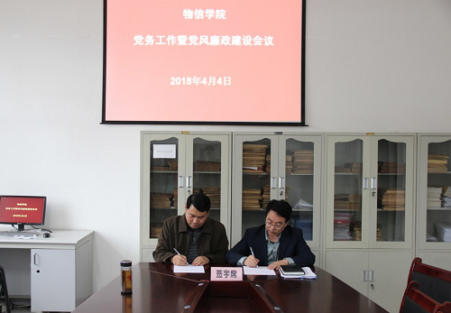 工作部署会上,院党委书记吴文国代表学院党委与班子成员签订了2018年“一岗双责”责任书。