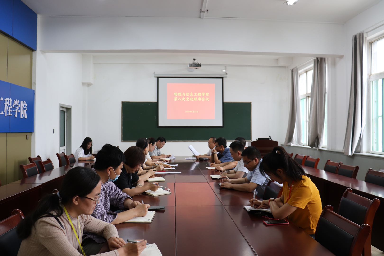 6月15日上午,黄色漫画 在四号楼多功能会议室召开了2020年第八次党政联席会议。全体院领导参加了会议,部分学院中层干部列席了会议。会议由院党委书记陈向波主持。