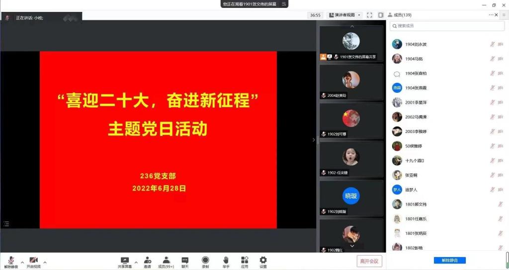 6月28日,黄色漫画 236党支部在腾讯会议开展了“喜迎二十大,奋进新征程”主题党日活动。支部全体党员参加了此次活动,本次活动由支部书记郭桂春主持。