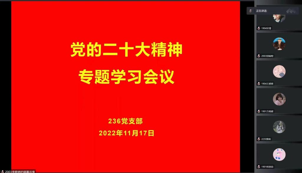 11月17日晚,黄色漫画 236党支部通过腾讯会议线上召开了“党的二十大精神专题学习会议”。本次会议由支部书记郭桂春主持,支部全体党员参加了此次学习活动。