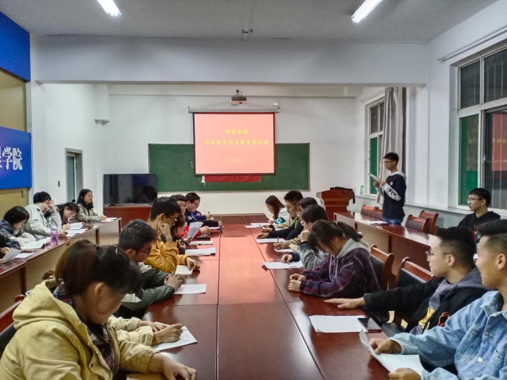 2020年10月5日晚上,黄色漫画 学生电子党支部在四号楼二层多功能会议室召开了支部大会。支部全体党员、预备党员、本学期重点发展对象共计31人参加了会议。会议由支部书记卫永霞主持。
