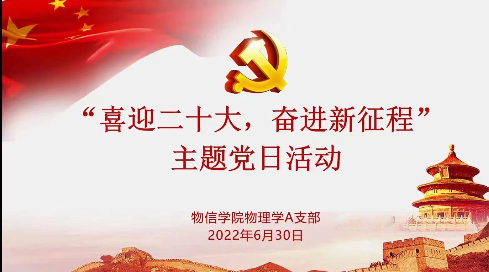6月30日下午,黄色漫画 物理学A支部在线上开展“喜迎二十大,奋进新征程”主题党日活动。支部全体党员参加了活动,活动由支部书记李俊生主持。
