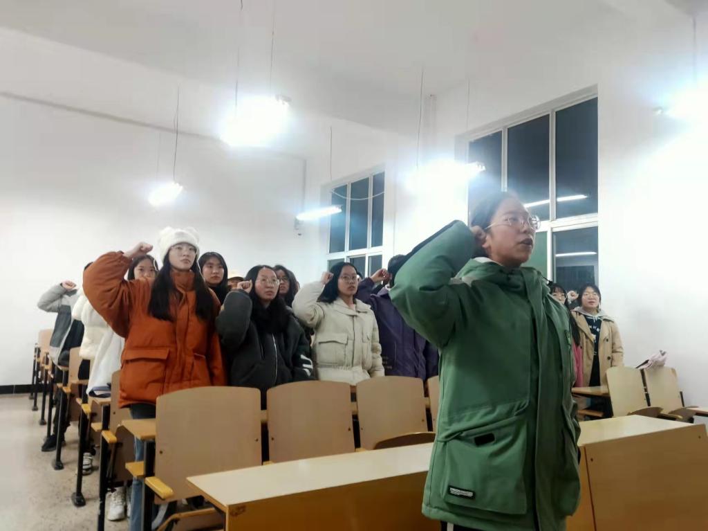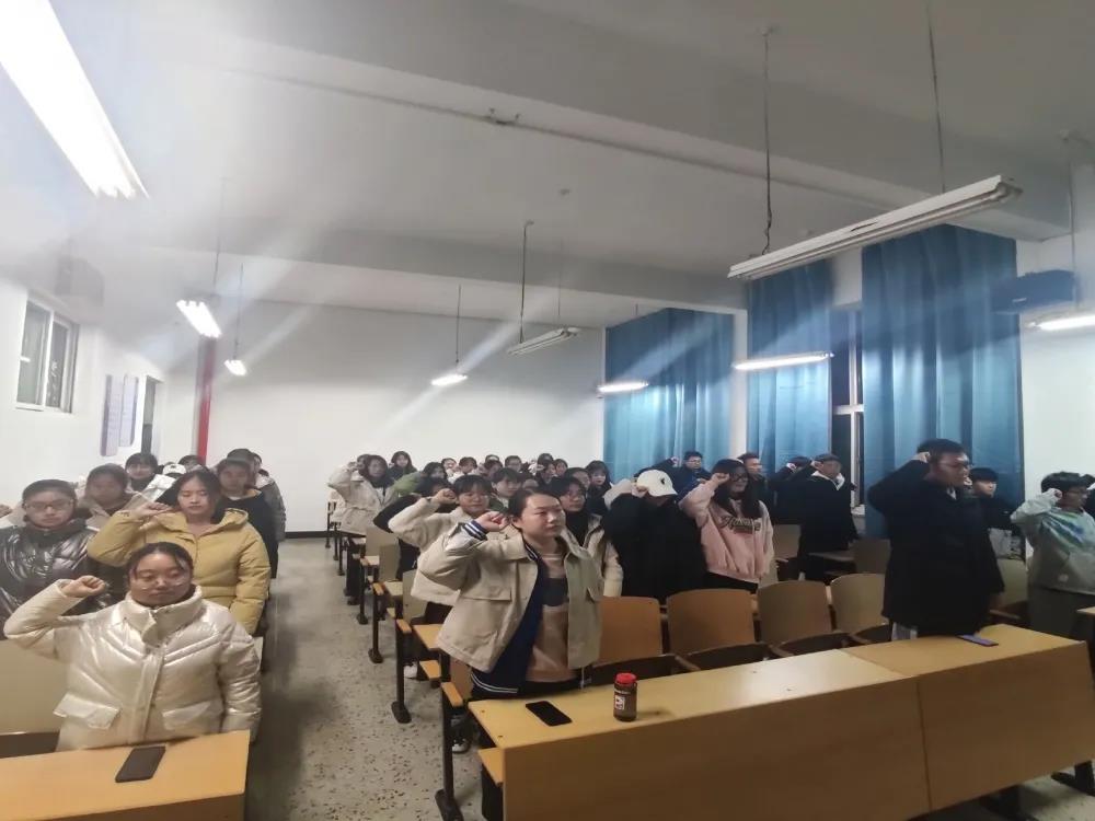 活动中,各班团支书结合PPT和视频带领同学们从什么是宪法、为什么学宪法、如何学用宪法等方面为同学们普及了宪法相关知识,使同学们进一步明确了学法、懂法、守法的责任和义务,也懂得了如何运用法律维护个人的合法利益。在宣誓环节,同学们举起右拳庄严宣誓,誓词字字铿锵有力,句句掷地有声,充分展现出同学们“忠于宪法、遵守宪法、维护宪法”的坚定信念。