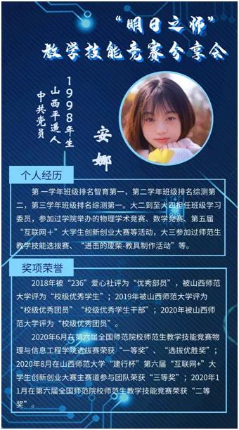 为了充实假期生活,提升对师范类专业竞赛相关知识的了解,1月23日,黄色漫画 2004班于线上开展了“明日之师”教学技能竞赛分享会。本次分享会由班长王泽辉主持。分享会还特别邀请到了“第六届全国师范院校师范生教学技能竞赛”二等奖获得者——1701班安娜分享个人比赛经验。