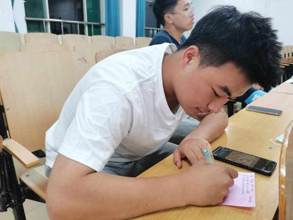 活动中,同学们在室内室外进行了各种各样的游戏。在室内“猜猜他是谁”“你画我猜”“背后涂鸦”“一反常态”四个游戏环节中,同学们手舞足蹈、通力合作共同完成了比赛;“爱心接力”环节中,大家纷纷匿名写下自己的烦恼,并随机抽取别人的烦恼,为他们建言献策,提出自己的小点子。室外活动中,进行的“衔纸杯传水”“水上乒乓球”“手舞足蹈”“123木头人”“叫号接球”等游戏都使同学们的身心得以充分放松。