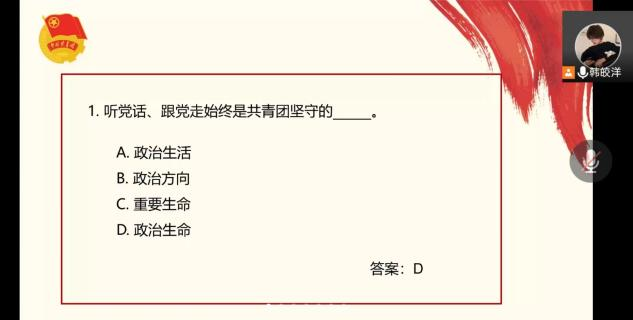 2104团支部结合共青团山西省委推出的知识竞赛活动,组织本班团员青年开展了团史知识竞答活动。活动中同学们积极参与、踊跃回答问题,在参与的过程中提升了同学们对百年团史的了解程度。同学们纷纷表示会继承和发扬共青团的优良传统,练就过硬本领,投身强国伟业,在新时代新征程上奋勇搏击。