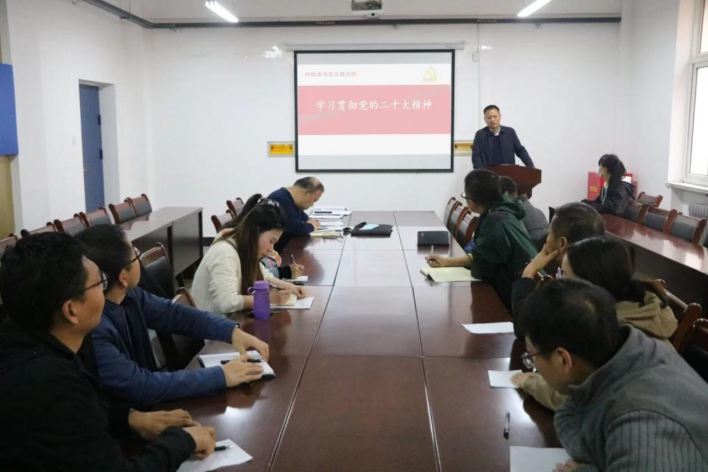 会议强调,学习宣传贯彻党的二十大精神,是当前和今后一个时期的首要政治任务。会议要求全体教职工要立足工作实际,全方位多角度地做好党的二十大精神的学习宣传,坚持学思践悟,知行合一,不断增强“四个意识”、坚定“四个自信”、做到“两个维护”,真正将党的二十大精神落到实处,转化为推动学院高质量发展的强大动力。