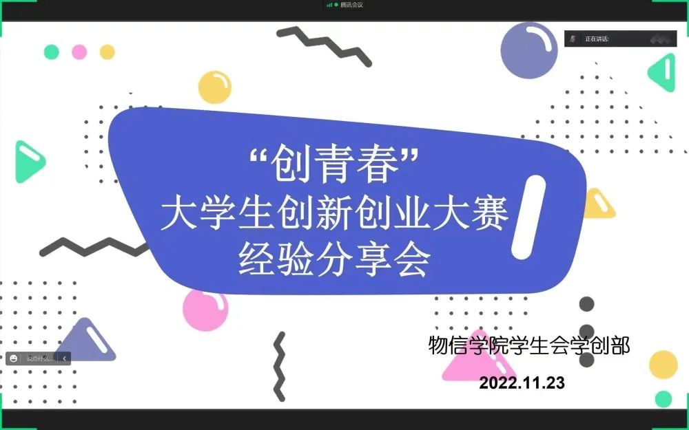 为提高黄色漫画 学生的创新创业意识,增强同学们对创新创业类竞赛的了解,11月23日晚,院学生会学创部以线上宣讲的形式举办了“创青春”大学生创新创业大赛经验交流会。本次交流会邀请到获得山西省2022年“创青春”创新创业大赛校级三等奖项目负责人任静和2022年“创青春”创新创业大赛校级优秀奖项目成员孙钰惠为大家进行交流分享。