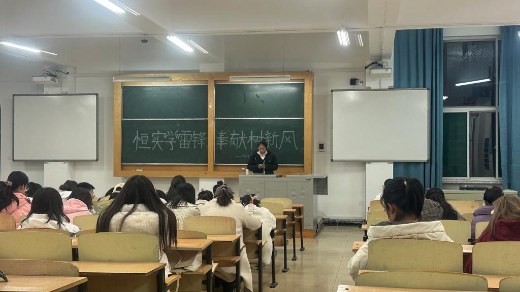 活动中,李星萍带领支部团员学习雷锋日记,从小事做起,学做一颗螺丝钉,从小事做起,奉献自己。团小组代表王珏讲述了“京城活雷锋”孙茂芳的故事,他无微不至地照顾着5位孤寡老人和8位生活困难的老人,用自己的行动展现了一名退休军人乐于助人的情怀。王珏表示,在我们志愿者心中,被需要是一种幸福,要勇于奉献自己,服务大家。李星萍强调,我们要时刻铭记雷锋精神,加强自身思想道德建设,明白自己所担负的时代使命,树立中国特色社会主义共同理想,做一名学业有成,乐于为中国特色社会主义事业奋斗终身的当代大学生。