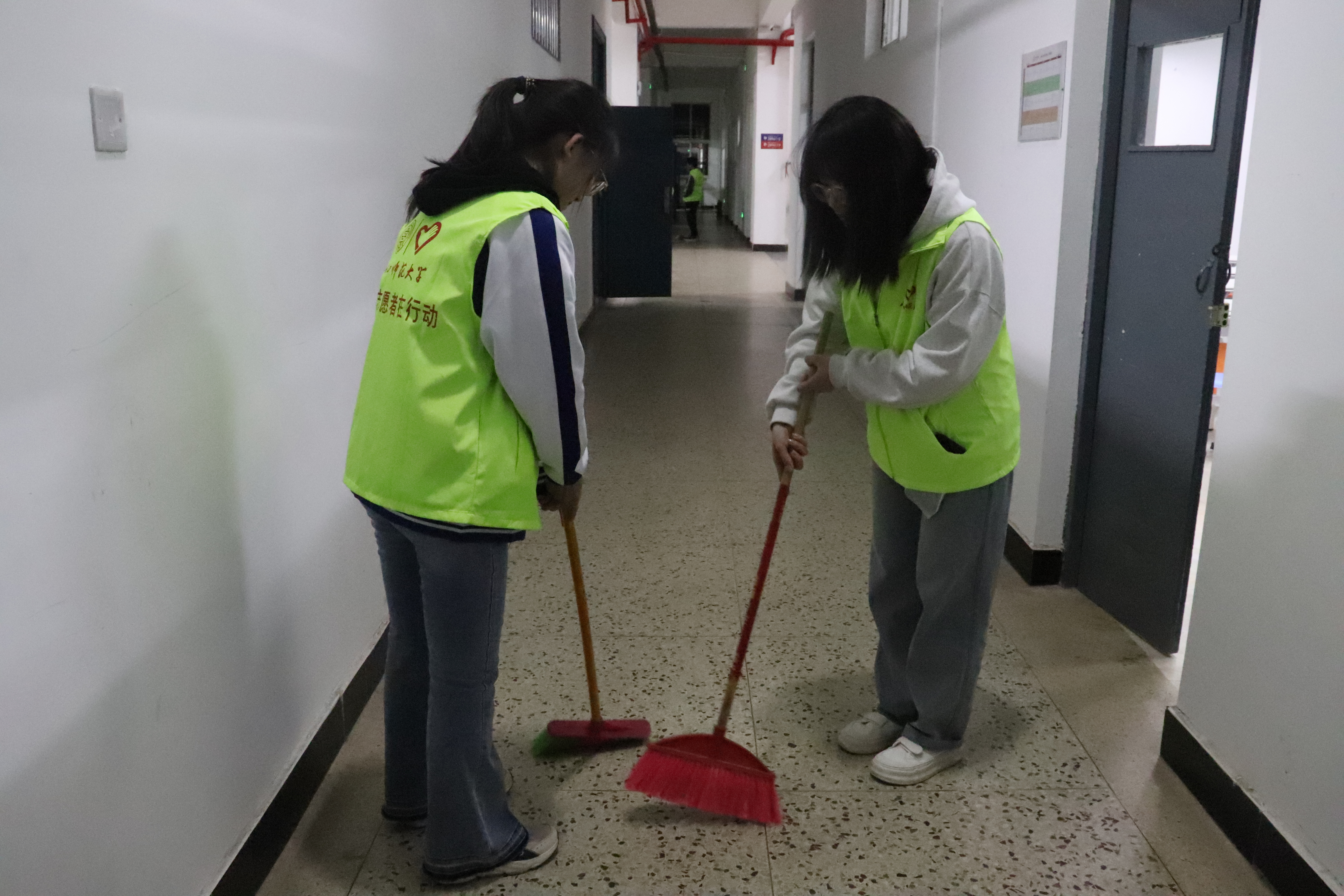 院“励耕”青协与地科学院开展清扫教学楼志愿活动