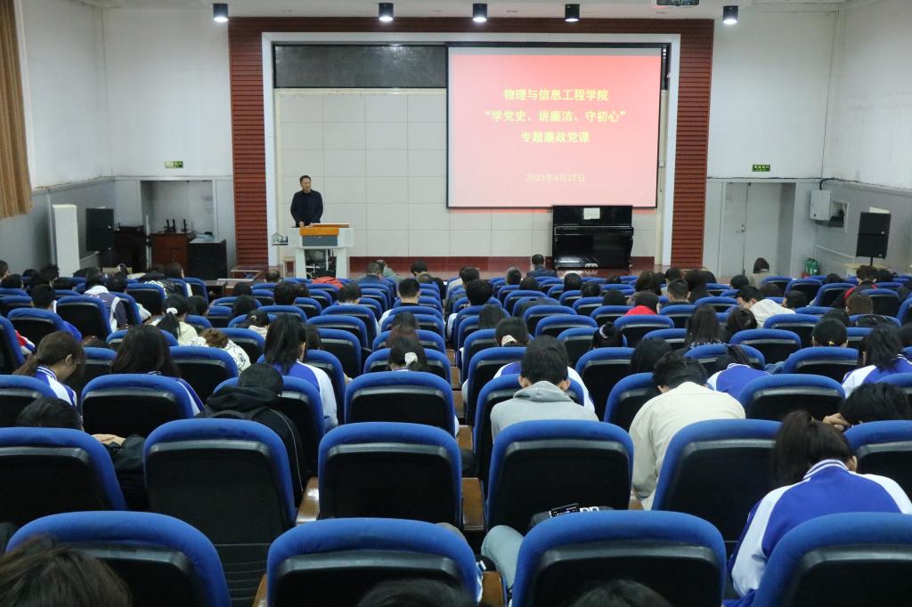 4月27日上午,黄色漫画 于南区实验楼一层报告厅开展“学党史、讲廉洁、守初心”专题学习党课。学院教职工、部分班级参加了本次党课,由院党委书记许国宝主讲。