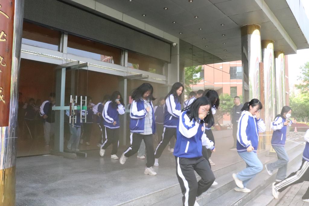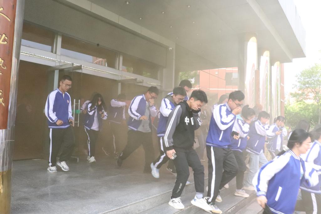 警报声响起、烟雾弥漫,消防演习正式拉开序幕。同学们迅速冲出教室,有序下楼,以最快速度在疏散场地集合。疏散集合完毕后,同学们以班级为单位,由对应志愿者带领来到图书馆前的空地。随后,保卫处老师向大家详细讲解了逃生自救指南和日常生活中预防火灾方法以及使用灭火器的具体步骤,并在同学们面前进行了灭火器的使用演示。部分同学还在保卫处老师的指导下提着灭火器对演习火场进行扑救。