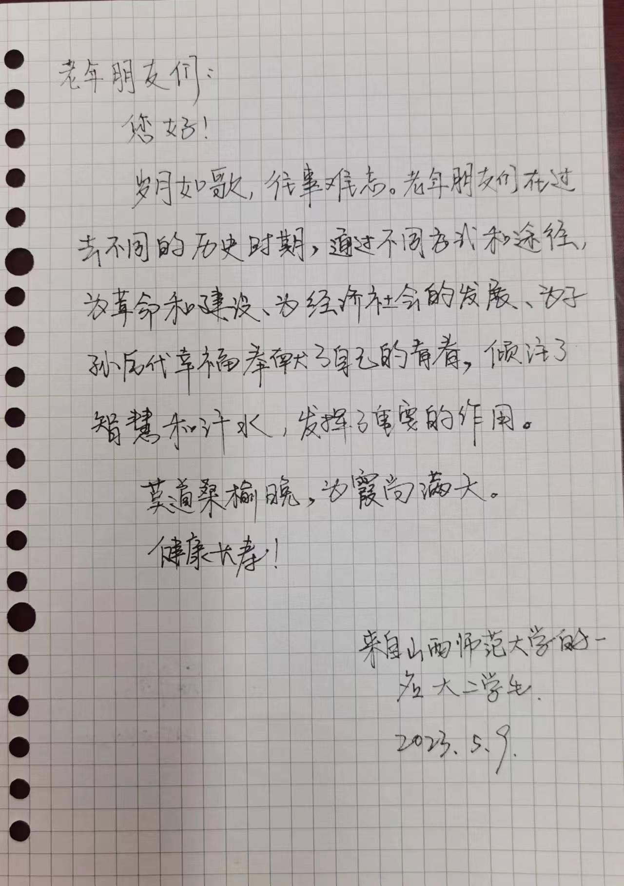 本次活动的顺利举办,使同学们懂得了尊敬老人、关爱老人的重要性,同时还营造了爱老敬老的良好氛围。(文/2206班 张美娟 摄/2106班 阴晓慧 2001班 荀斐)