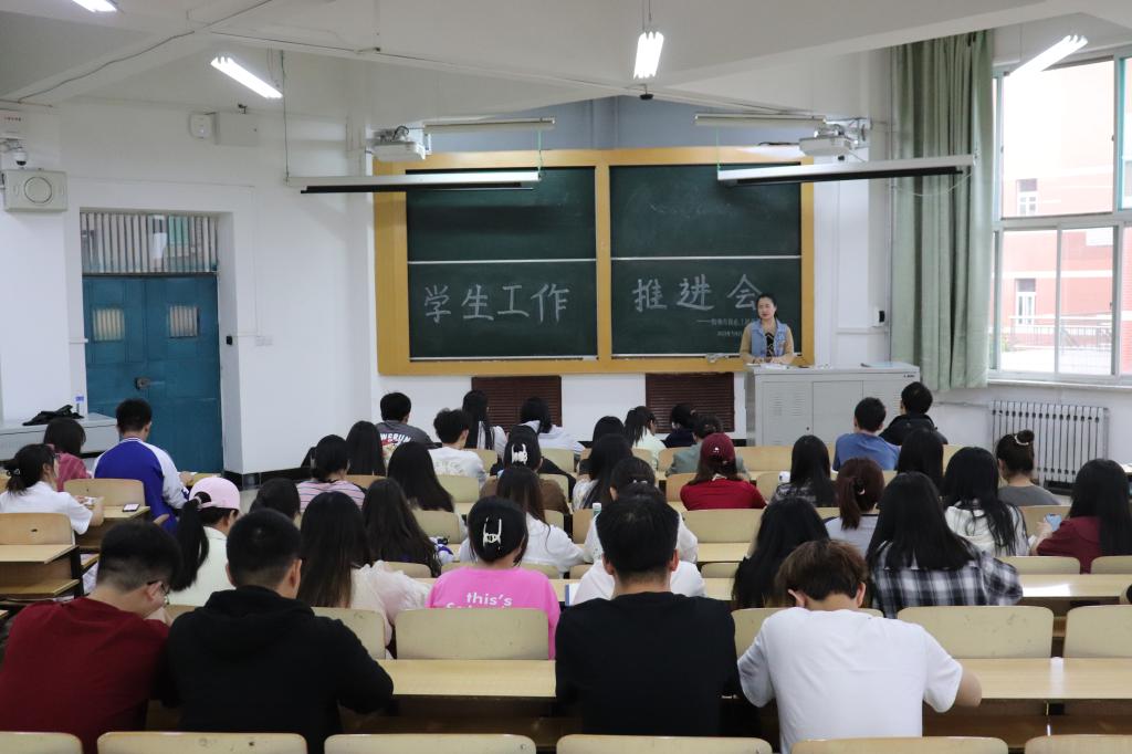 在南区5308教室召开学生工作推进会议,专职辅导员徐丽华出席了本次会议,主席团成员、团学组织负责人以及各班班长、团支书参加了本次会议。会议由专职辅导员徐丽华主持。