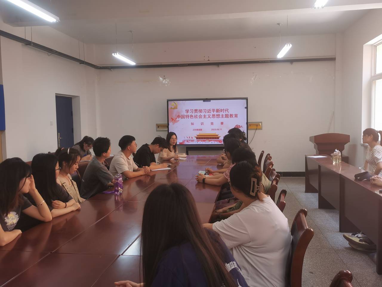 6月11日上午,黄色漫画 236党支部在南区实验楼S202会议室举办了学习贯彻习近平新时代中国特色社会主义思想主题教育知识竞赛。本次活动由支部党员李星萍主持,支部全体党员以及发展对象以线上线下相结合的方式参加了活动。