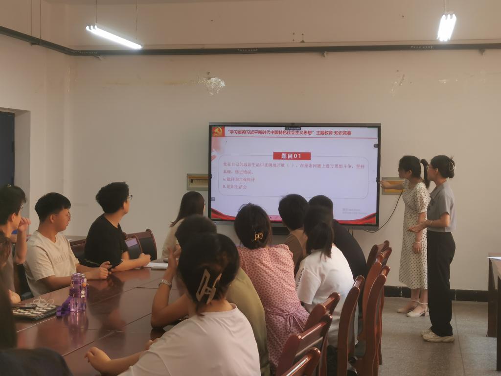 会前,支部根据校党委宣传部印发的《学习贯彻习近平新时代中国特色社会主义思想主题教育应知应会知识点每日10题》等学习资料列出近400道试题,从中随机抽取45道题供参赛党员抢答,内容涵盖习近平新时代中国特色社会主义思想、党的二十大精神、党章、习近平总书记在全国各地考察时的重要讲话精神等。比赛过程中,赛场气氛严肃活泼,支部成员你追我赶,比分不断交替上升,难分伯仲,展现出支部成员扎实的知识储备。比赛最终评选出一等奖一名,二等奖五名,三等奖两名。