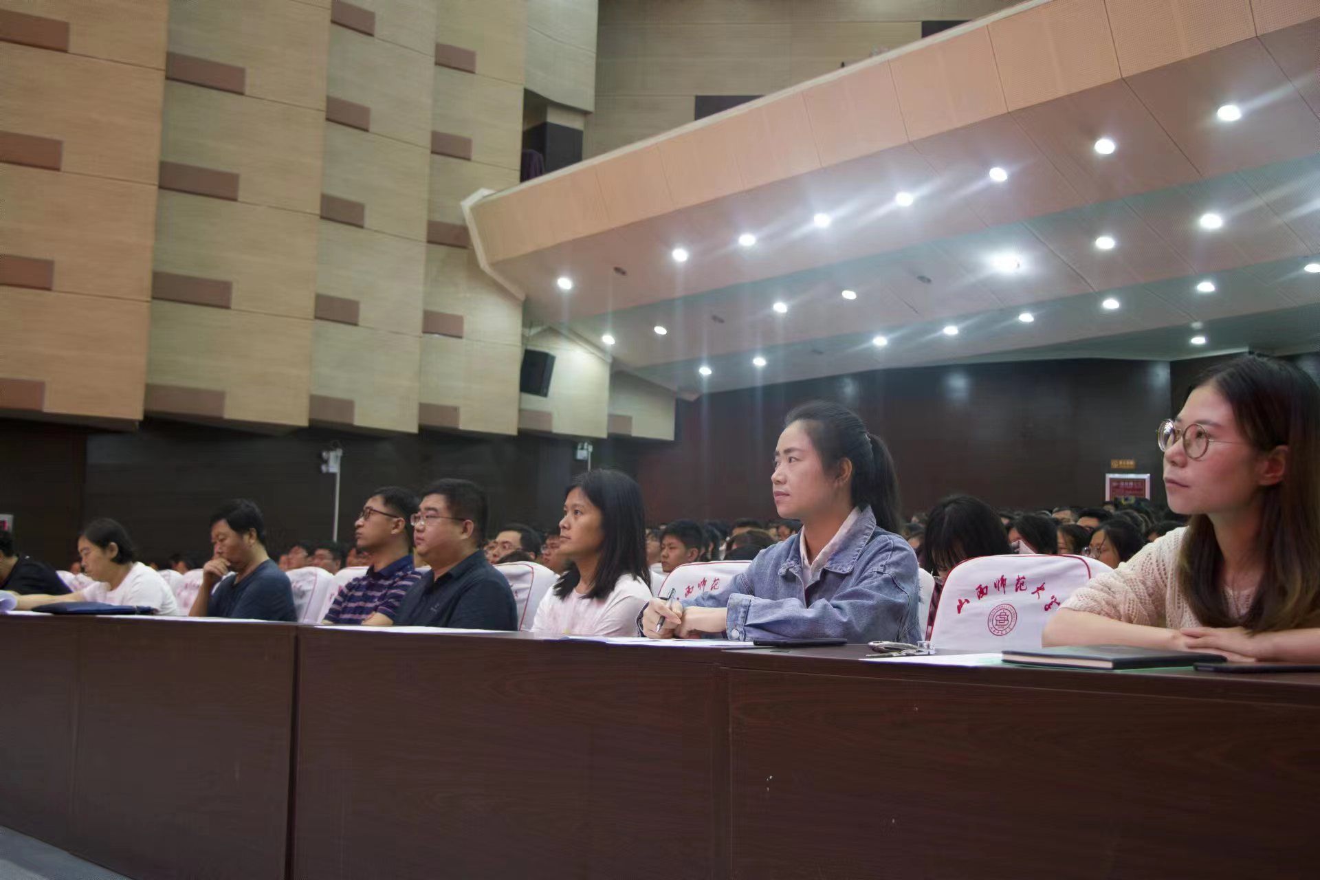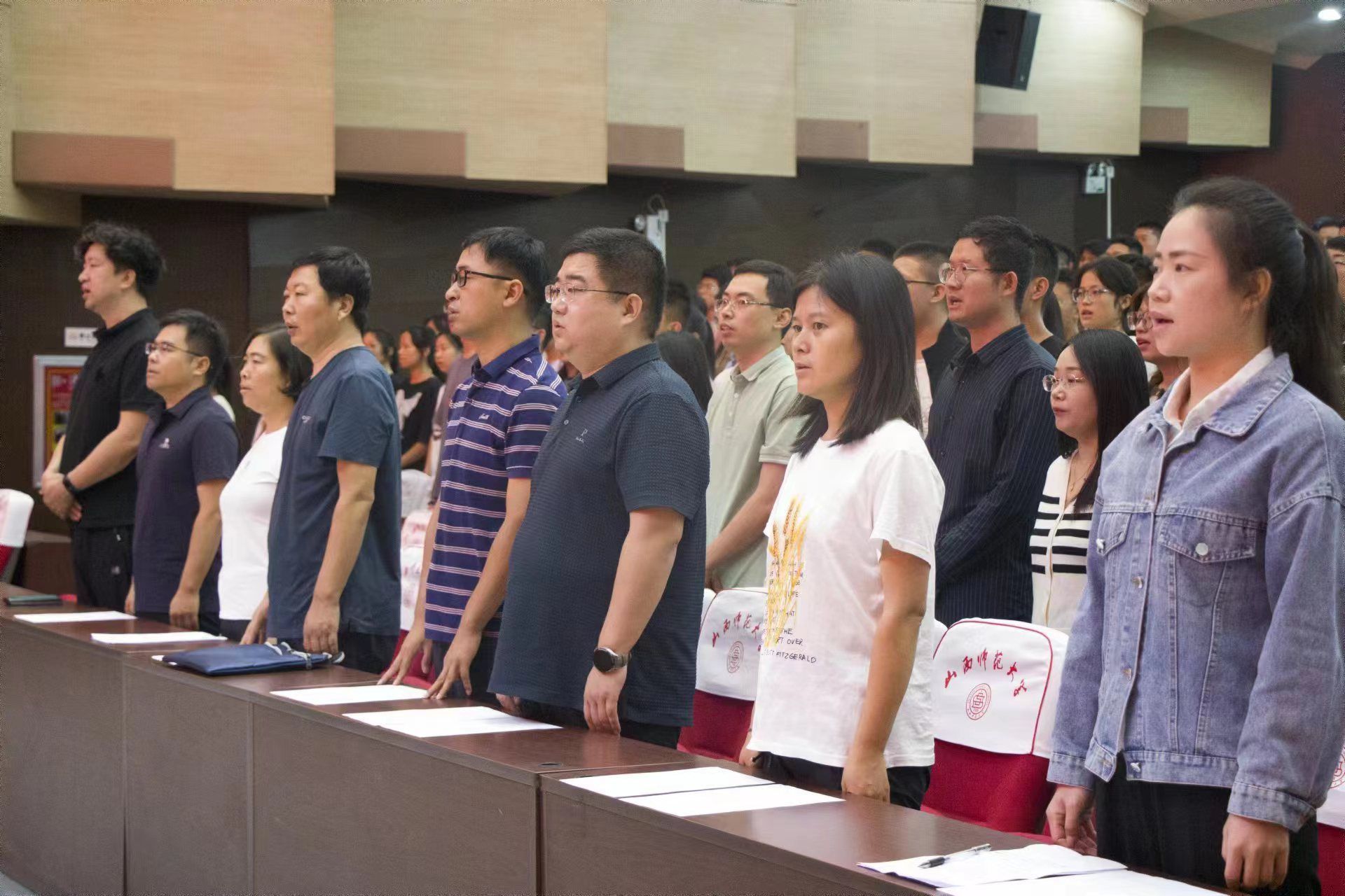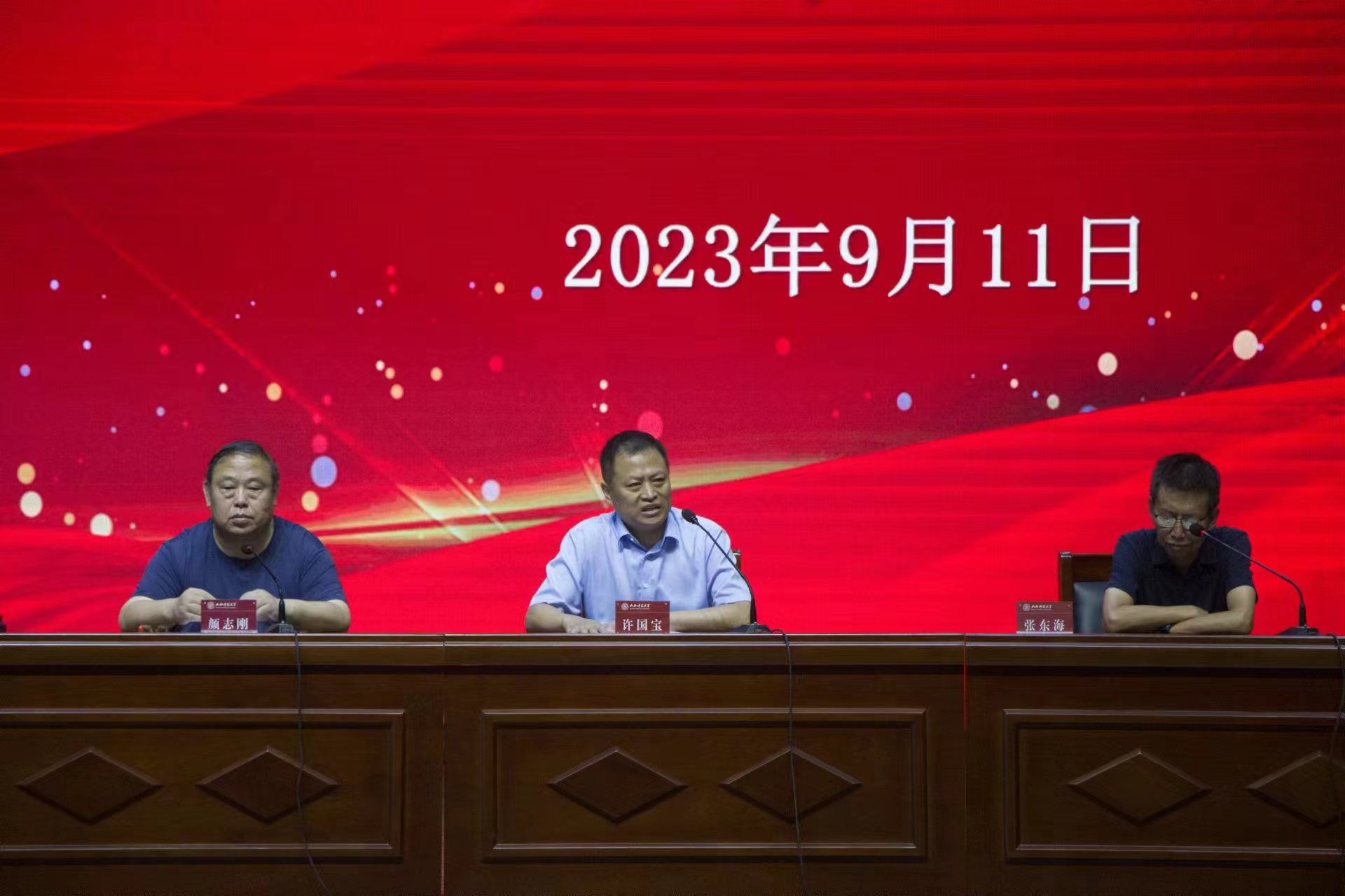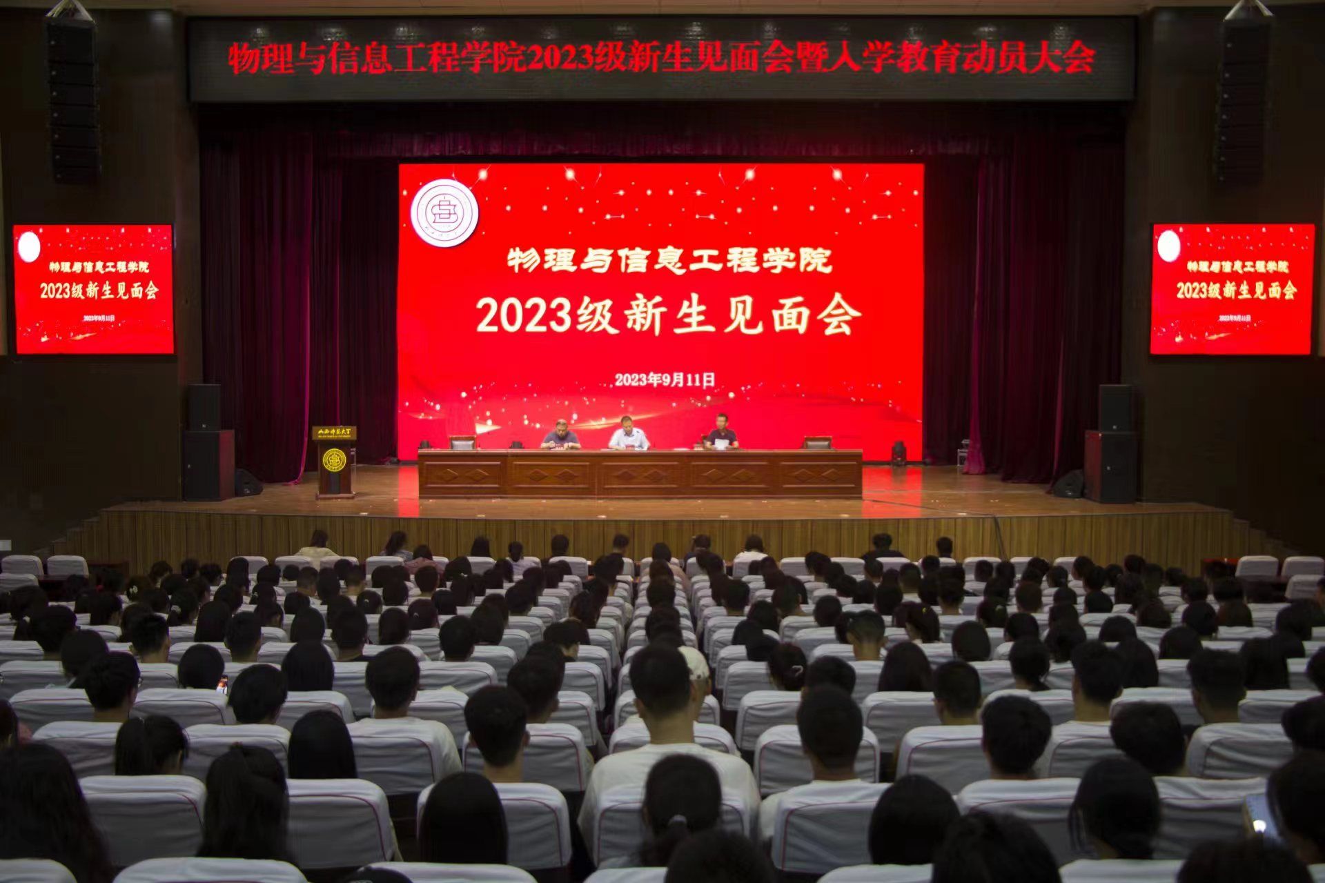 于9月11日上午10点在南区科学会堂召开物理与信息工程学院2023级新生见面会暨入学教育动员大会。院党委书记许国宝、副院长张东海、院党委副书记颜志刚、学院全体中层干部、2023级各班辅导员和全体大一新生参加了本次见面会。