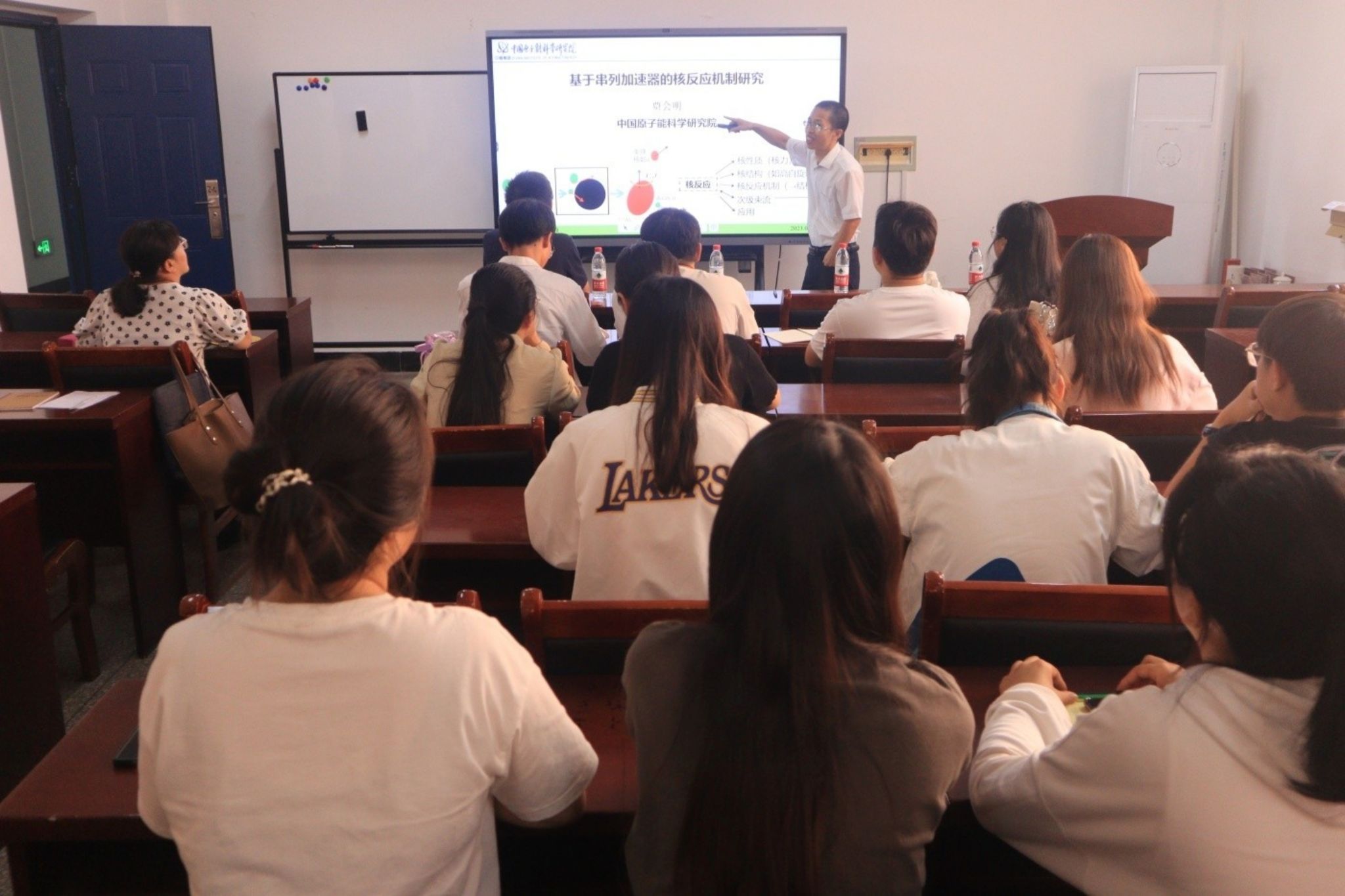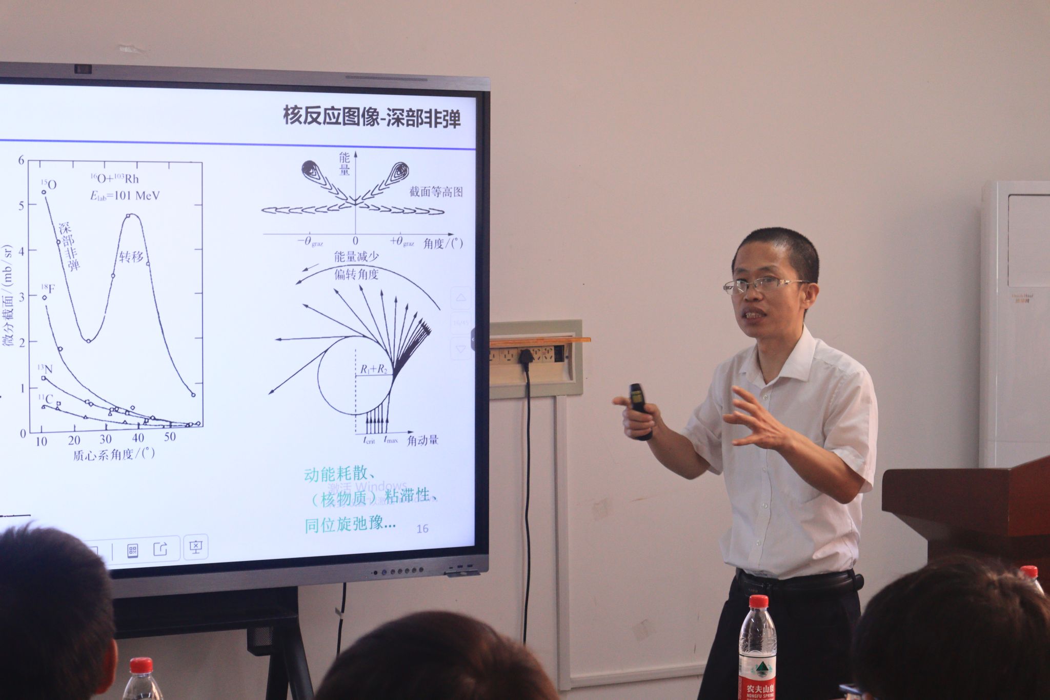 讲座上,贾会明研究员提出原子核是质子和中子构成的量子多体系统,是物质结构的一个基本微观层次。他指出,核反应研究正不断深化人类对物质微观结构的认识,同时核反应也是产生大量未知放射性核素的方法,对此领域的研究正不断刷新对核物理的传统认知。他还从低能重离子核反应的物理图像入手,介绍实验上如何研究核反应机制,并给出研究现状、研究热点和展望。讲座最后,贾会明研究员对同学们提出的问题一一解答,气氛十分热烈。