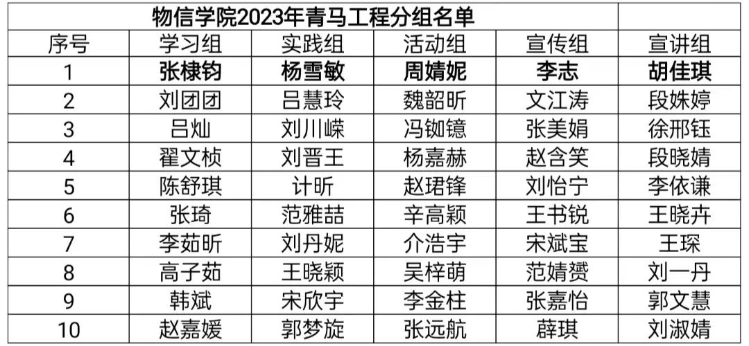 附:物信学院2023年青马学员分组名单(文/2308班 赵含笑 摄/2209班 李志)