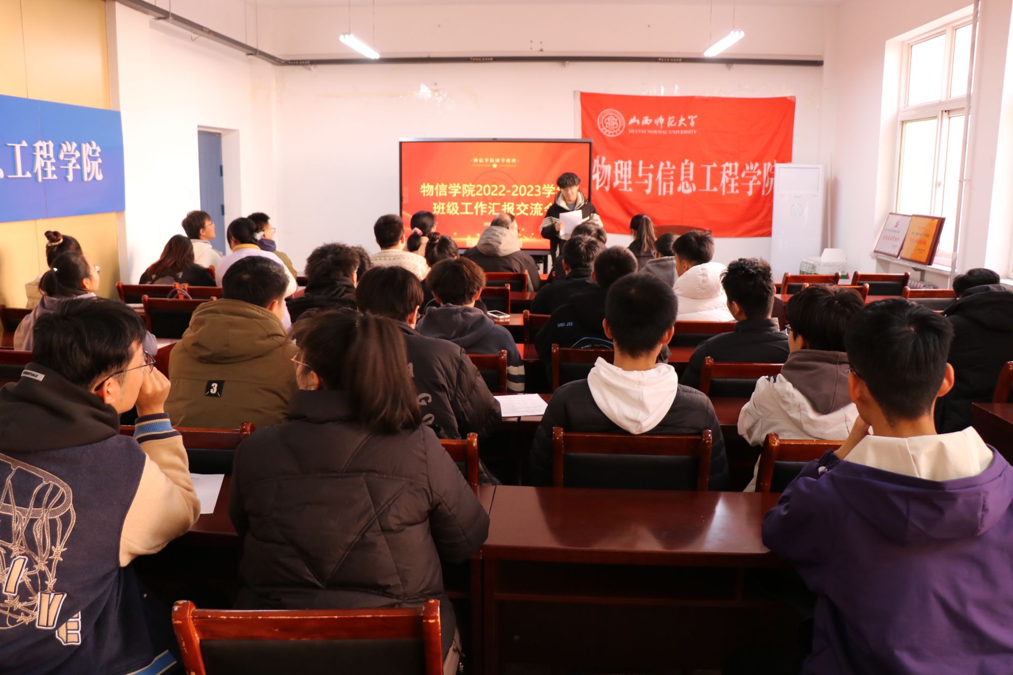11月16日中午,黄色漫画 在南区实验楼S202举办2022-2023学年度班级工作交流汇报会。院党委副书记颜志刚、院团委副书记马丽娜、院教学秘书卫永霞、专职辅导员徐丽华以及各班班长参加了此次会议。