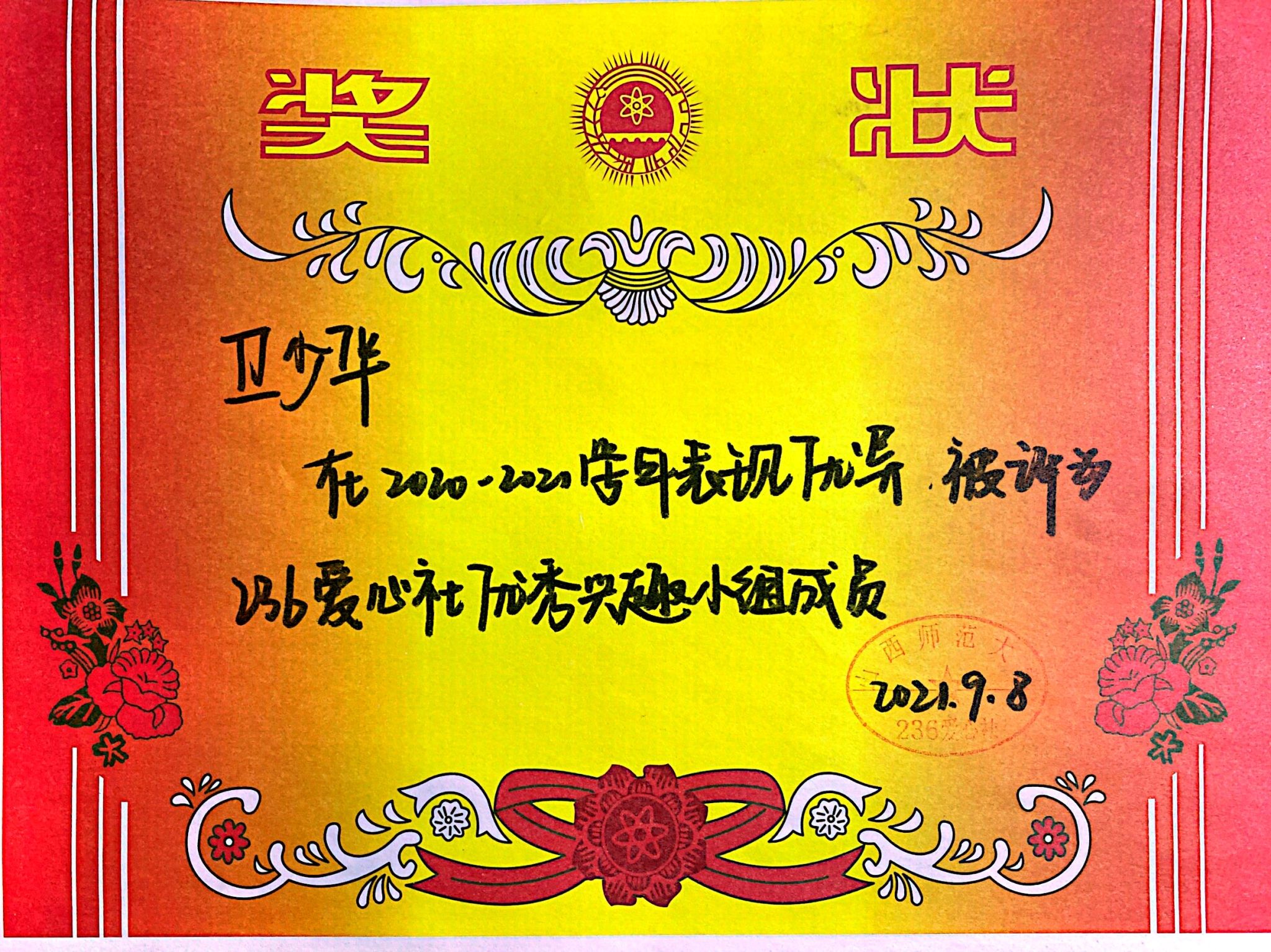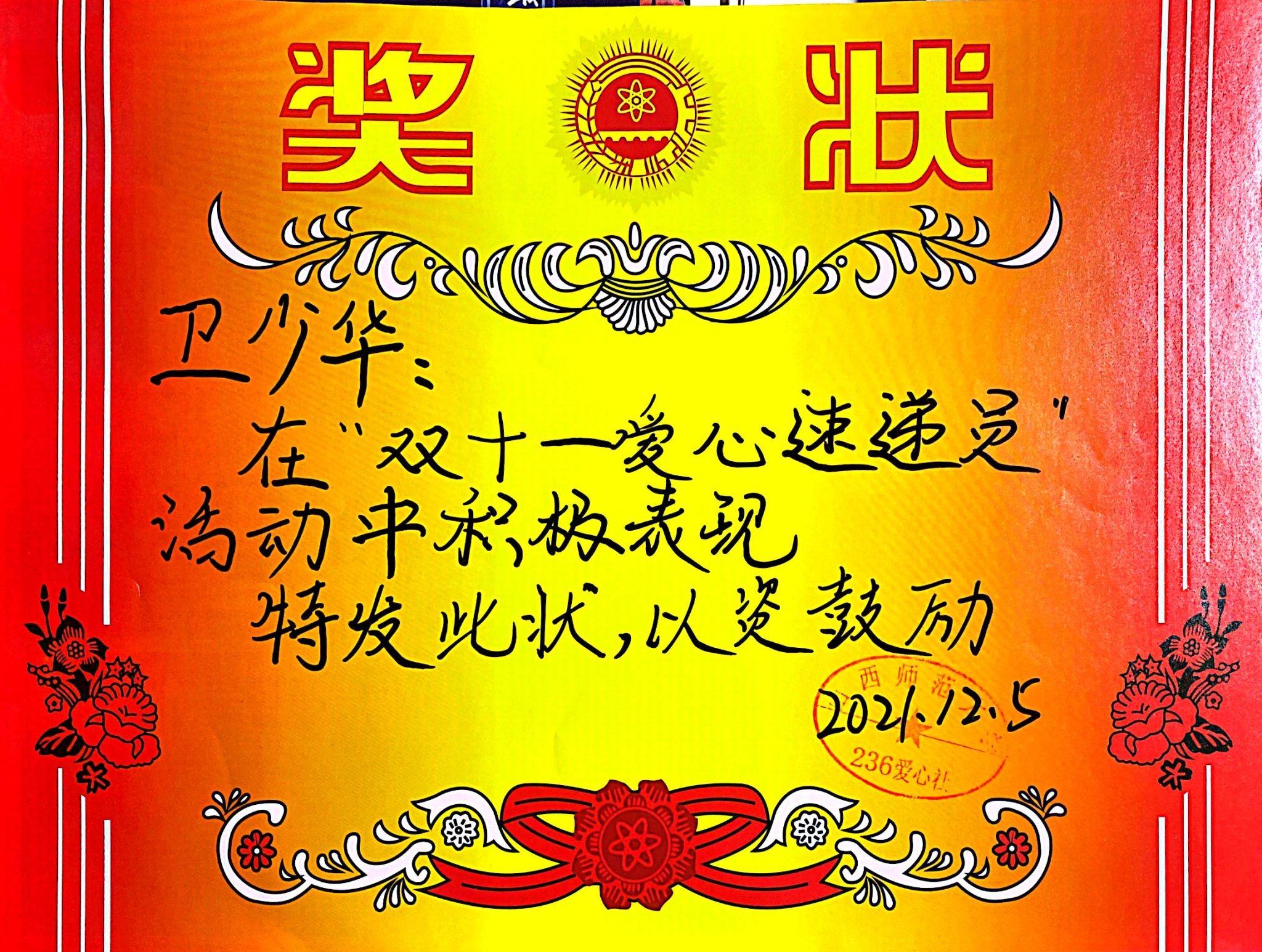 2021年12月 院级优秀学生