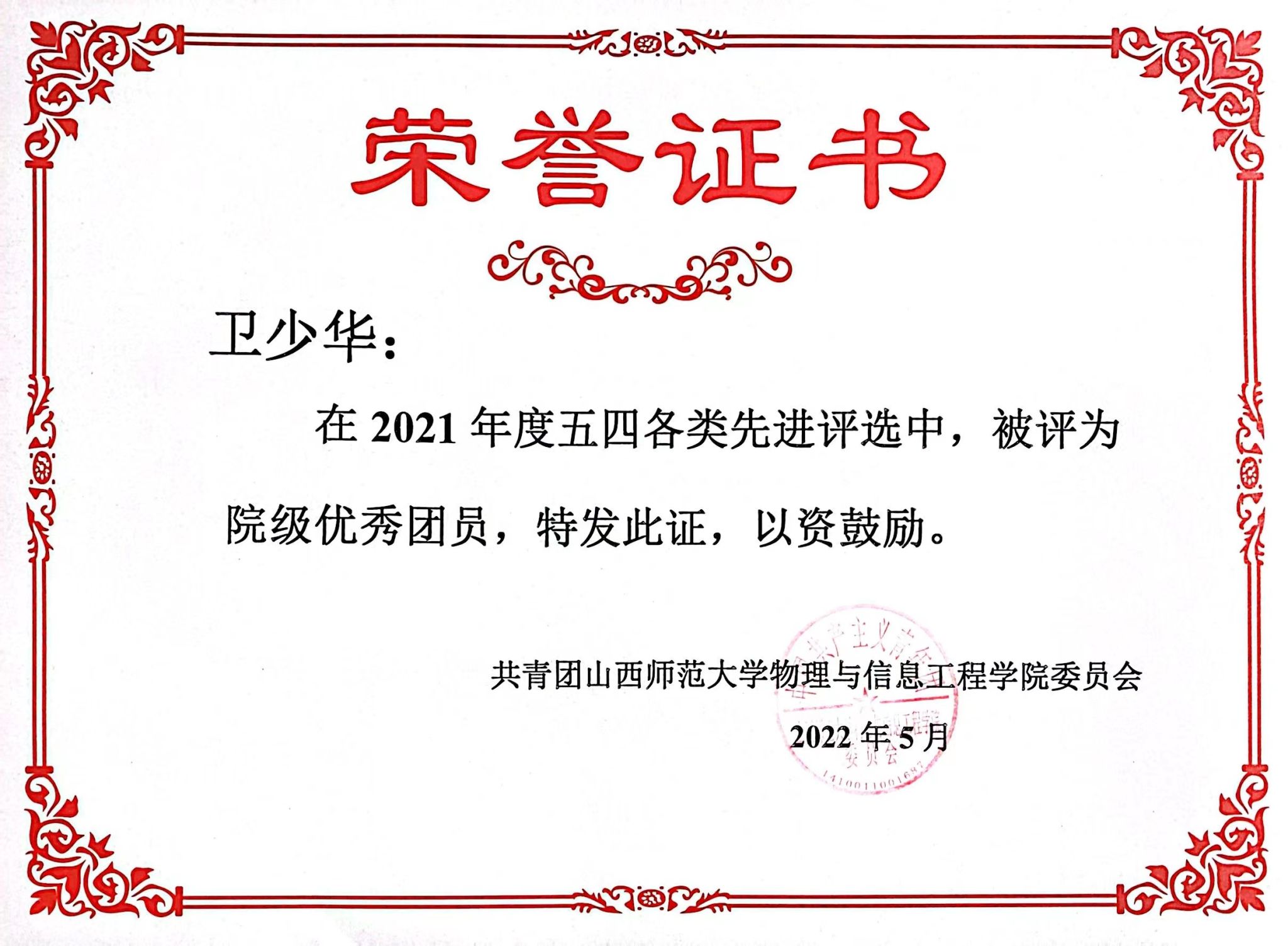 2022年5月 院级优秀团员
