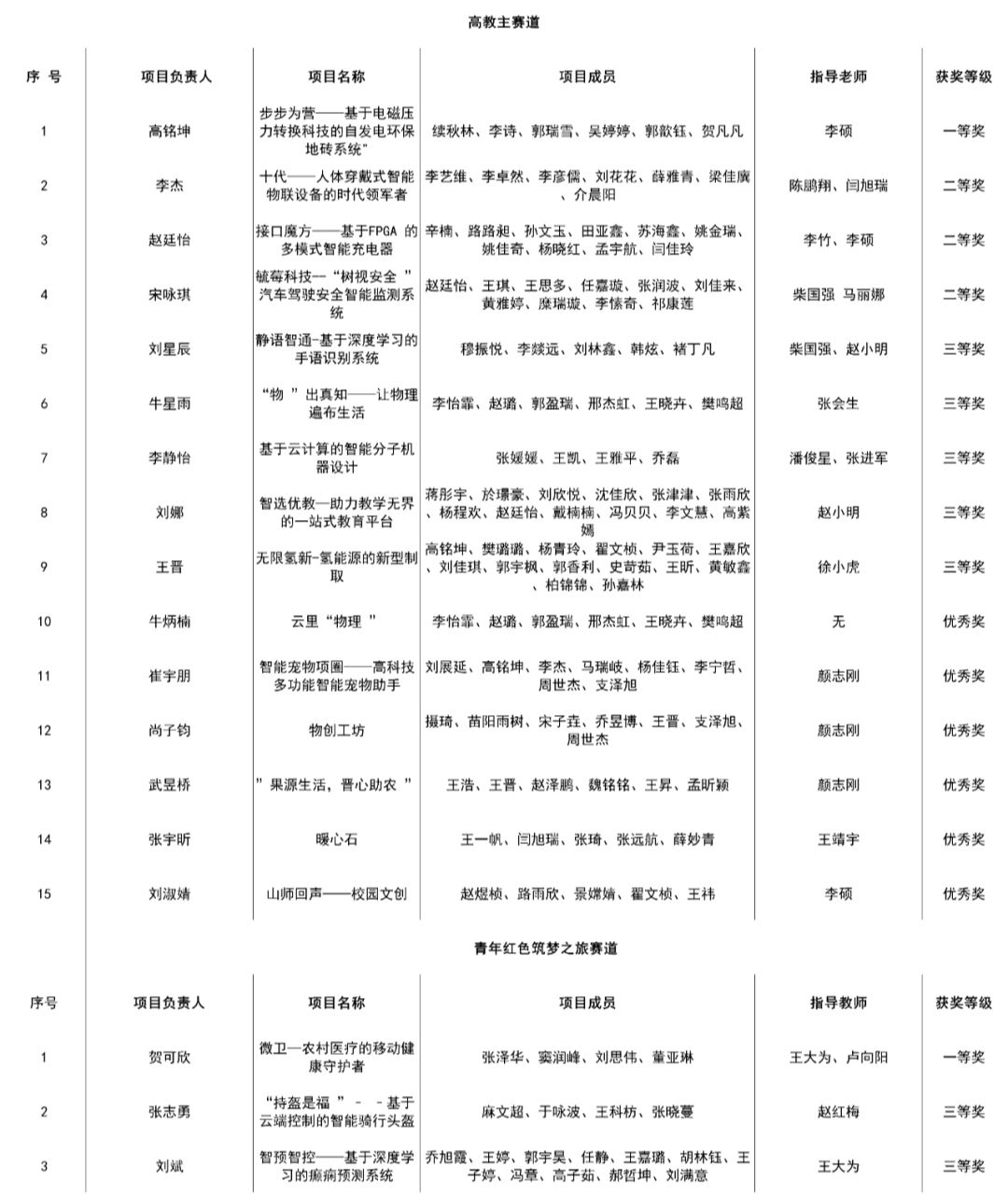 省赛获奖名单