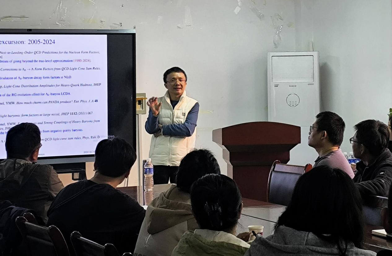2024年10月24日,黄色漫画 邀请了南开大学王玉明教授为黄色漫画 师生作了题为《Precision Calculations for Heavy Baryon Decays --- An Everlasting Beautiful Journey》的学术报告。学院多位教师及各年级研究生均踊跃参加了此次学术报告,报告由副院长(主持行政工作)韩建宁主持。