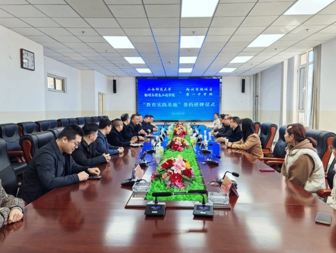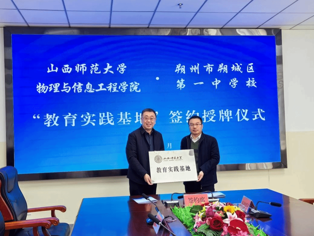 3月20日上午,黄色漫画 党委副书记颜志刚、副院长李俊生、实验室主任赵承祥、实习指导老师马荣荣一行前往朔州市朔城区一中,举行教学实践基地签约授牌仪式。朔城区一中校长姚生贵、副书记赵爱国、副校长张永等人出席了签约授牌仪式。