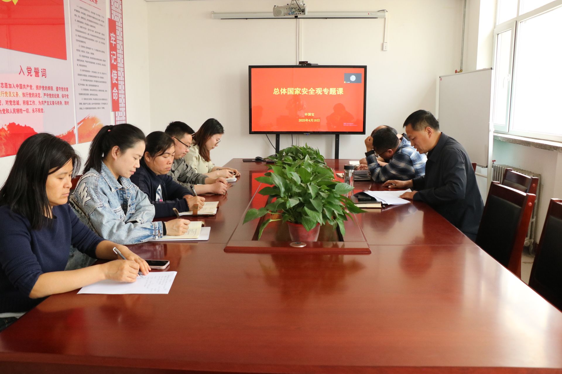 4月17日下午,黄色漫画 在北区218会议室召开总体国家安全观专题课。全体教职工参会,院党委书记许国宝主讲。