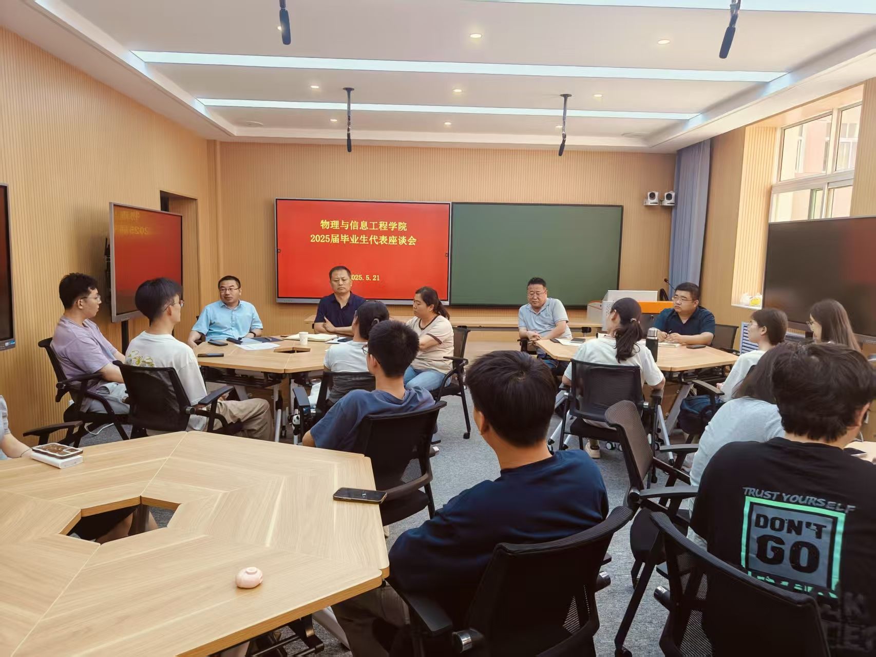 为深入了解毕业生需求,优化人才培养体系,物信学院于5月21日召开2025届毕业生代表座谈会。院党委书记许国宝,副院长(临时负责人)韩建宁、教学副院长李俊生、系主任、本科教学秘书及毕业生代表参会。