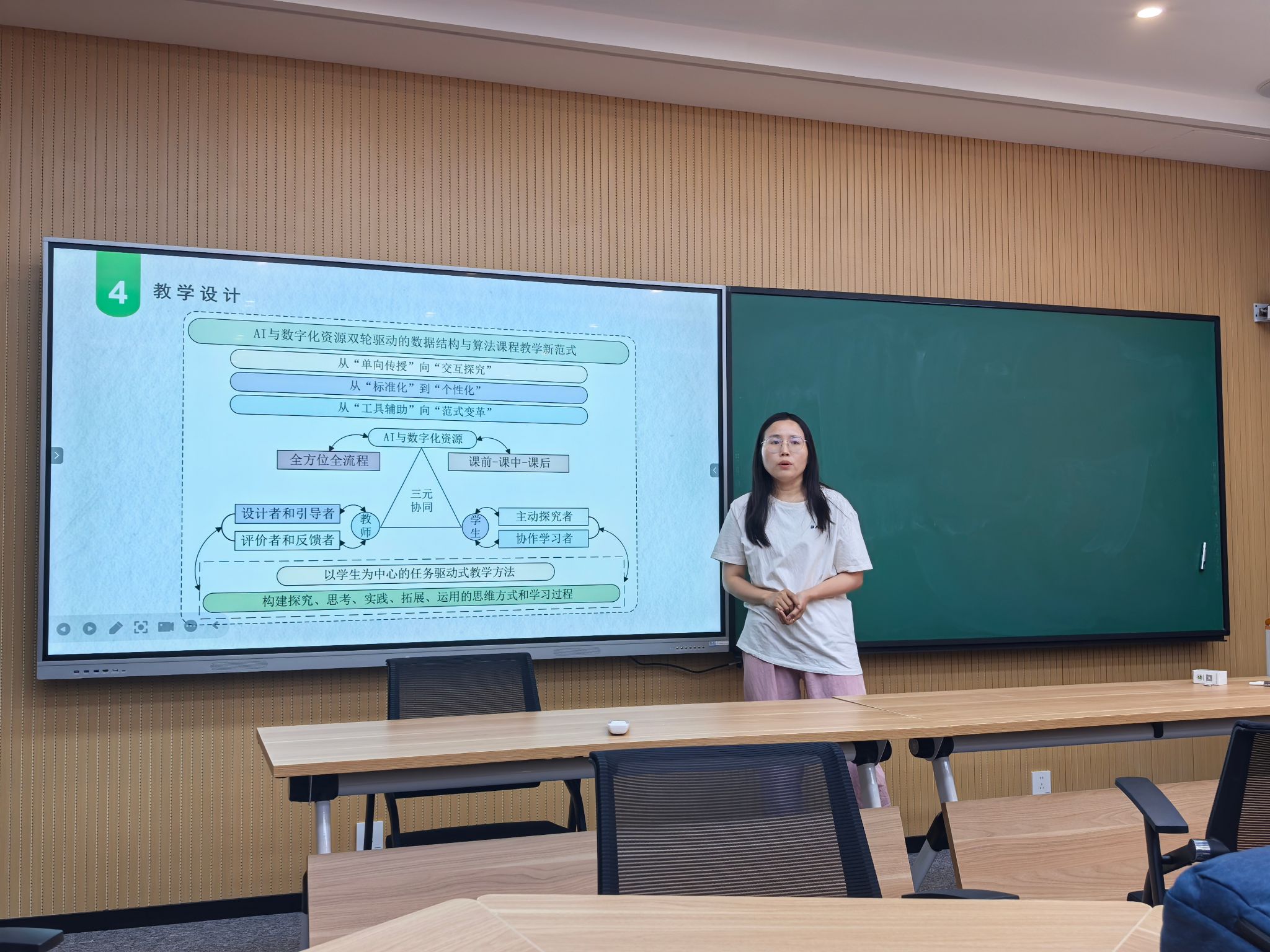 参赛教师选取一个教学内容进行教学展示,展示数字化资源和信息化工具在教学中的合理应用。评委根据参赛教师的展示情况进行了点评,并与参赛教师进行了讨论。