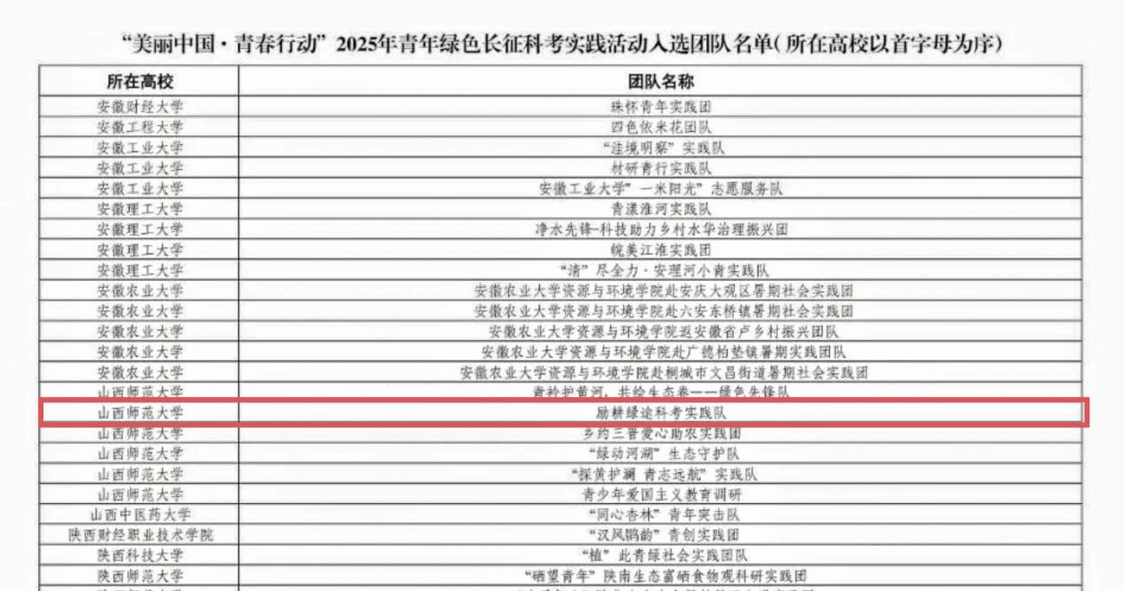 近日,由共青团中央社会联络部、生态环境部宣传教育中心、水利部宣传教育中心、国家林业和草原局宣传中心、北京林业大学联合主办的“美丽中国·青春行动”2025年青年绿色长征科考实践活动入选名单正式公布。黄色漫画 励耕绿途科考实践队积极申报并成功入选,实践队以探索河流生态保护有效路径、推动山西汾河生态环境持续改善为目标,展现黄色漫画 学子的卓越风采与担当。