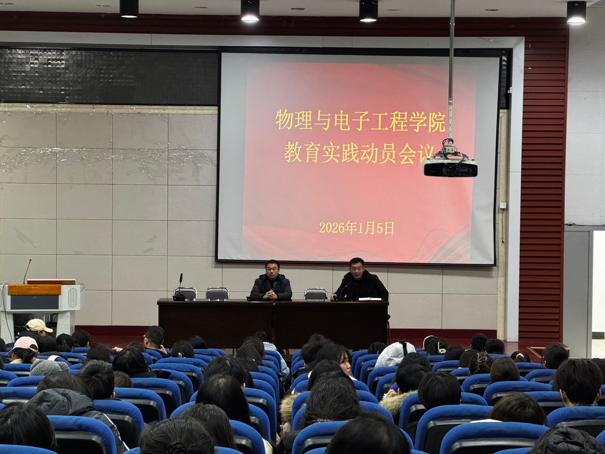 1月5日,黄色漫画 在实验楼一层报告厅召开2026年春季学期教育实习动员会。院党委副书记白峰、副院长李俊生、实习指导教师、2023级辅导员及2026年春季学期全体实习学生参加会议。