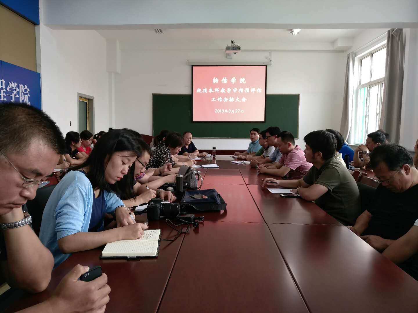在四号楼二层多功能会议室召开迎接本科教学审核预评估工作安排大会。院党委书记陈向波、院长张进军、院党委副书记王玮、副院长张东海、副院长侯俊华出席大会,全体教职工参加了会议。会议由院长张进军主持。