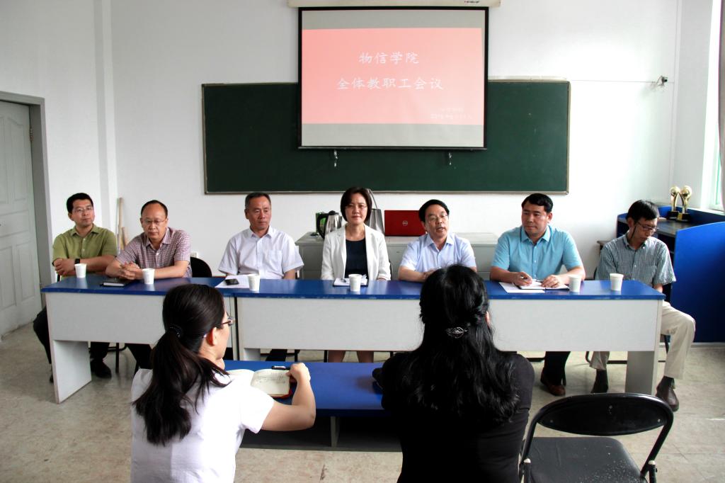 许小红副校长作了重要讲话,她指出:陈向波同志工作努力,也经历了几个部门、学院的锻炼,由他担任物信学院的党委书记,是学校从大局出发进行的重要调整和安排。她对陈向波同志提出了四点希望:一是尽快转变角色,充分发挥好院党委领航把向的作用;二是贯彻落实好校党委“围绕中心抓党建,抓好党建促发展”的理念,抓好学院的中心工作,进一步激发年轻博士的潜能,特别是在学科攻坚行动、博士点申报方面充分发挥院党委的政治核心作用,争取在2020年在博士点申报方面有所突破;三是要传承好前几届党委和几任书记的工作,继续抓好学生竞赛工作,建设好236品牌,要通过236品牌和文化教育长廊这个窗口更多的展示物信学院的教学科研及全貌;四是要用大的格局和宽广的胸怀关心对待学院的每一个老师,充分发挥他们的积极性,团结带领学院全体教师为物信学院的发展做出应有的贡献。她还对物信学院近年来的良好的发展、上升势头予以了高度的肯定,对学院也充满了期待和希望。