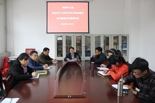4月4日下午,院党委中心组在学院一层会议室召开专题会议,传达学习习近平总书记两会期间的重要讲话和全国两会精神。党委中心组全体成员和各支部书记参加了会议。会议由院党委书记吴文国主持。