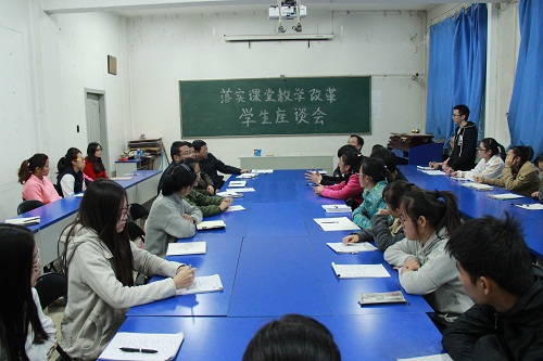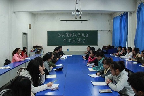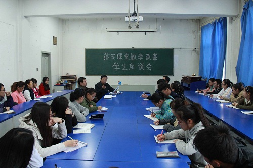 于11月1日下午4:30—7:30在4号楼二层多媒体会议室召开了落实课堂教学改革学生座谈会。院领导张争宽、杨虎、陈向波出席了座谈会,院团委书记杨亚东、院教学办公室主任卫永霞,大一到大三各班学习委员及学生代表共38人参加了会议。会议由杨院长主持。