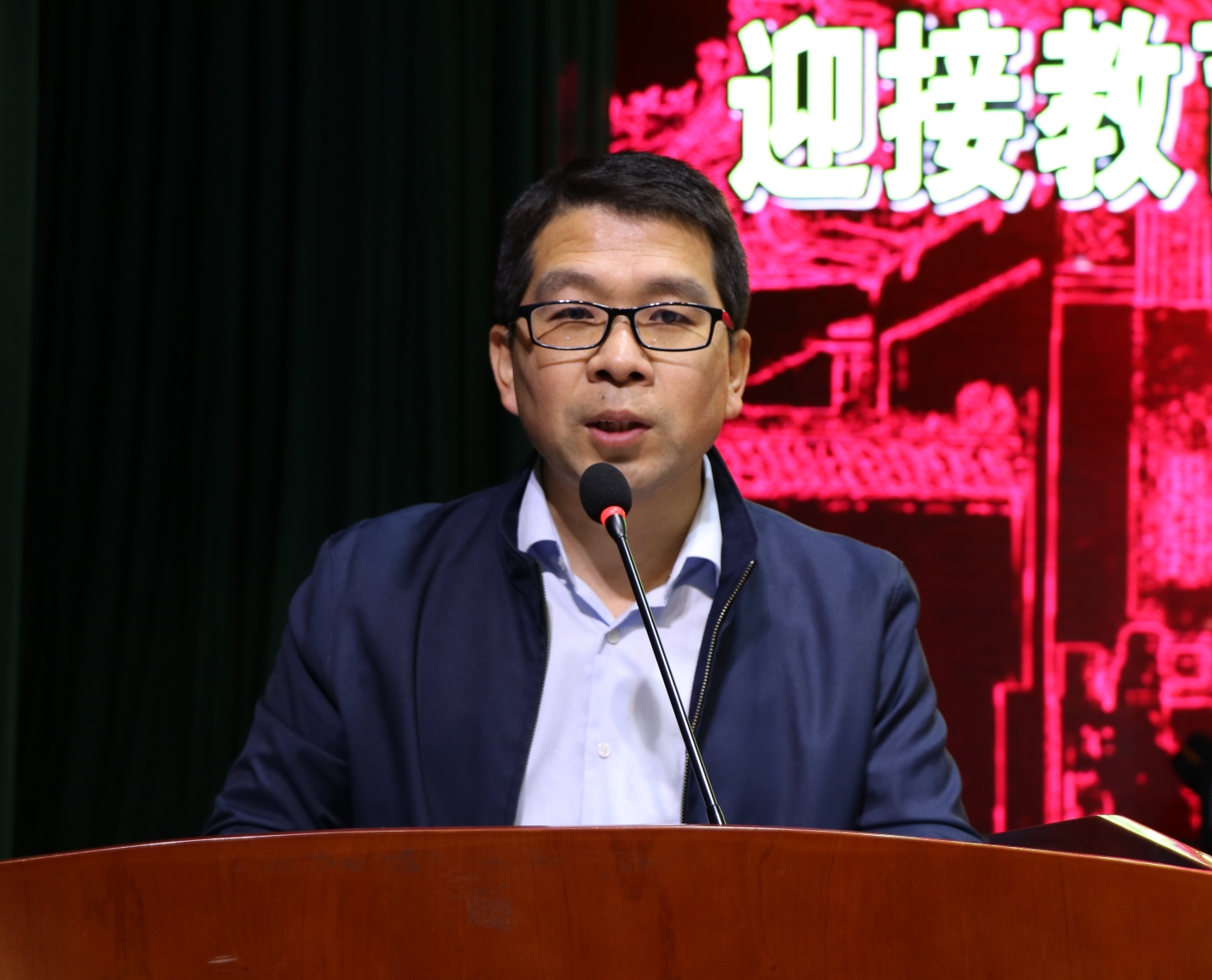 院党委书记陈向波首先就迎接本科教学工作审核评估作了动员讲话,并安排部署了迎接本科教学工作审核评估及评估期间的重点工作作了安排。他强调,为做好迎评工作,全院师生要统一思想、提高认识、振奋精神、规范要求,全力以赴的完成好迎评冲刺阶段的各项工作任务。他对全院师生提出了三点意见与要求,一是要切实增强迎评工作的责任感和紧迫感,在思想上高度重视迎评工作,树立“院荣我荣、院耻我耻”的主人翁意识,做到万无一失;二是要明确迎评工作的重点,要随时做好“被听”、“被谈”、“被看”的准备,要抓好评估期间的值班守岗工作;三是要按照迎评工作的各项要求来行事,要做到“四个来”(坐在前排来、把头抬起来、问题提出来、快乐学起来)、要提高“四个率”(提高到课率、提高抬头率、提高动笔率、提高点头率),以饱满的热情、昂扬的斗志、扎实的作风,全力以赴的打好迎评工作的最后攻坚战。