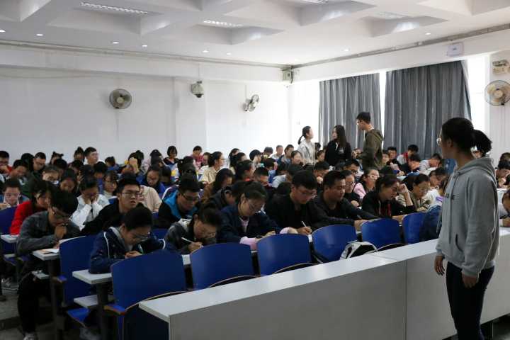 知识测试以考试形式展开,共设置20个考场,除15级部分学生在外实习外,剩余23个班级的在校学生参加了考试。考试题型包括选择题、判断题、填空题、解答题、论述题;内容涉及我校的校训、精神,本科教学审核评估的时间、目的与意义,学生应该怎样积极参加我校的迎评工作等。考试期间,整个考场井然有序,考风严肃,同学们严格遵守考场纪律,认真作答。院团委副书记岳文慧老师和学生会主席团成员对各个考场进行了不定时巡视。