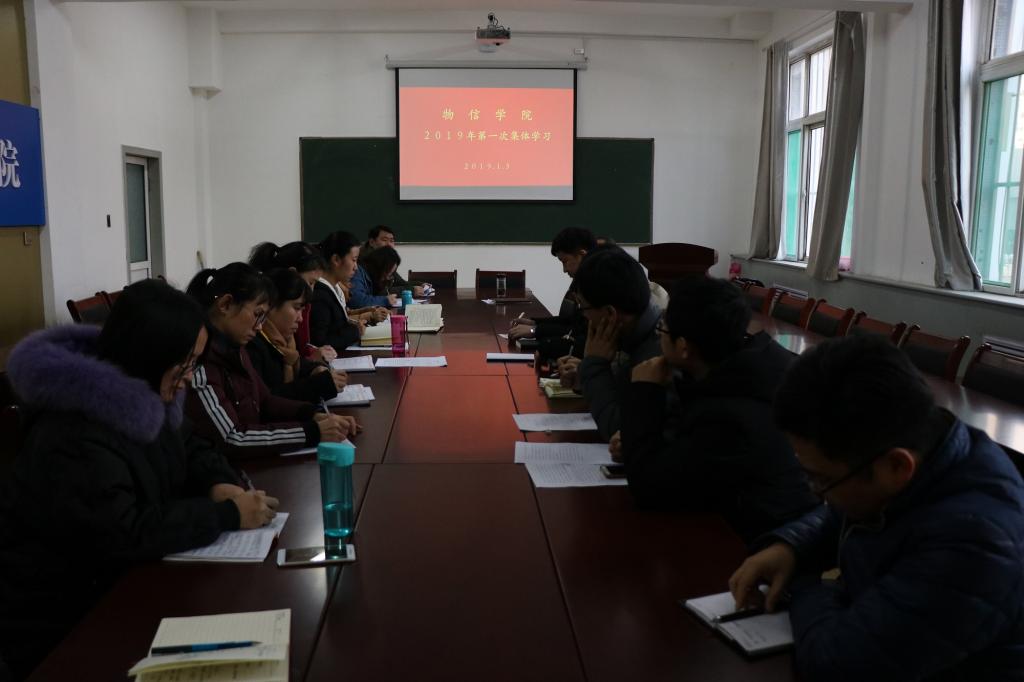 为认真贯彻落实校党委有关加强集体学习的要求和《物信学院集体学习制度》,保障学院中层以上干部学习能力的提升,推动各项工作深入开展,2019年1月3日下午4:10,黄色漫画 在四号楼二层多功能会议室召开了2019年第一次集体学习会议。全体院领导、中层干部和各党支部委员参加了会议。会议由院党委书记陈向波主持。
