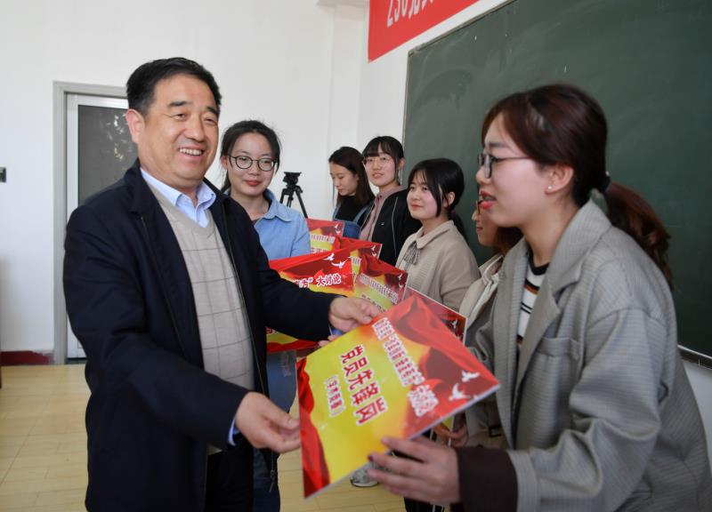 最后,卫建国对全体学生提出了三点要求:一是树立坚定的信念和理想,树牢马克思主义的信仰、坚定中国特色社会主义的信念、提振实现中华民族伟大复兴中国梦的信心,不断提升自我修养。二是要不断提高综合素质,尤其是要广泛涉猎,加大阅读量,锻炼提升阅读、写作和表达三项能力。三是要发扬吃苦精神和创新精神,不怕吃苦,不怕吃亏,经风雨、见世面,在艰苦环境的磨砺中成长为合格的共产党员。要认真学习党的理论,积极参与到各项爱心奉献活动和校园文化活动中。要积极参加各项竞赛,不断提升创新能力,把自己锻造成一个优秀的大学生。