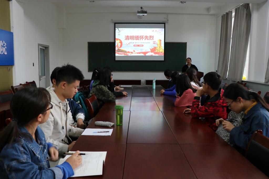 2019年4月9日晚6:10,黄色漫画 团委组织的“团支书上团课”第四课——“清明缅怀先烈”在四号楼二层多功能会议室开讲。团课由1802班团支书于孝宁主讲,大一、大二各班班长、团支书参加了团课。